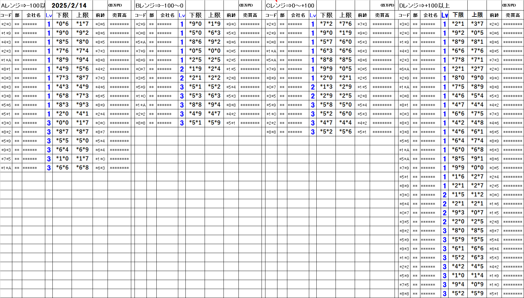 [Aレンジ:-100円以下][Bレンジ:-100円~±0][Cレンジ:±0~+100円][Dレンジ:+100円以上]