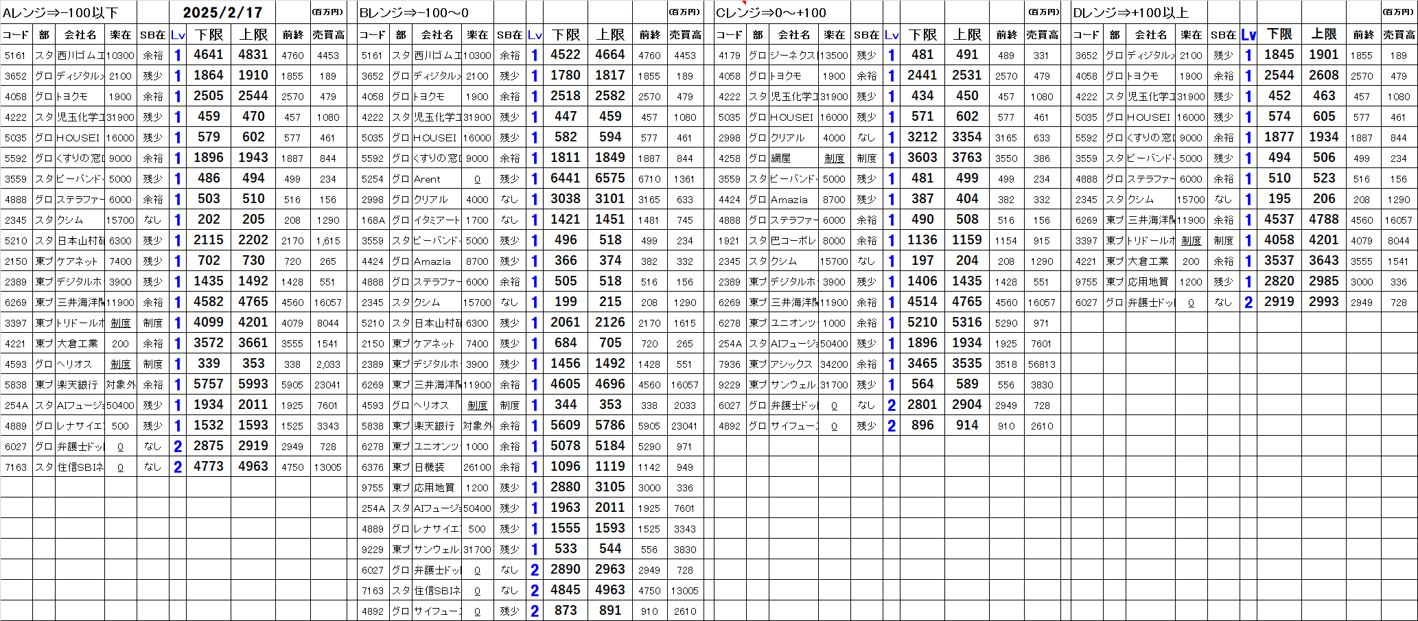 2025年2月17日 今日のシステムトレードの仕掛候補一覧です。