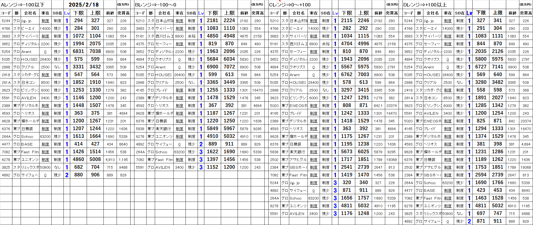 2025年2月18日 今日のシステムトレードの仕掛候補一覧です。