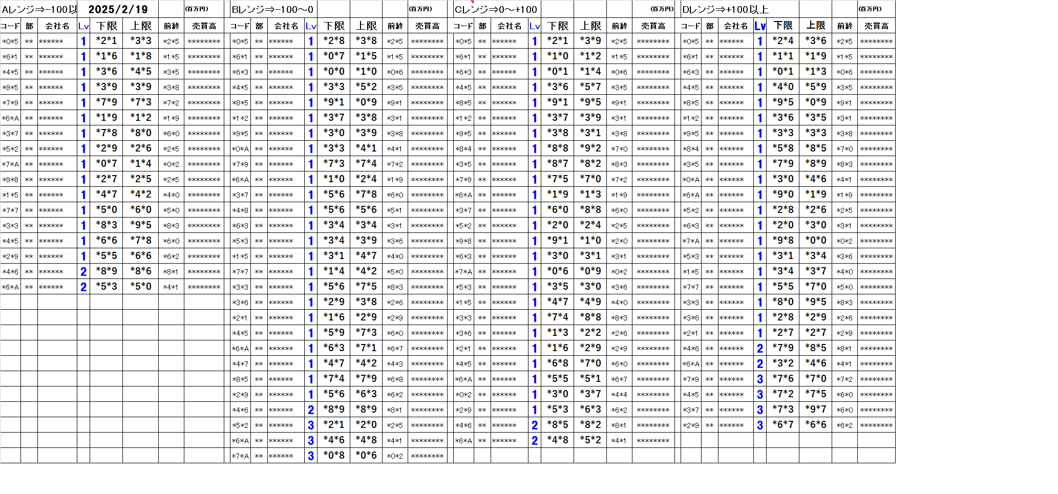 2025年2月19日 のシステムトレードの仕掛候補一覧はこんな感じです。