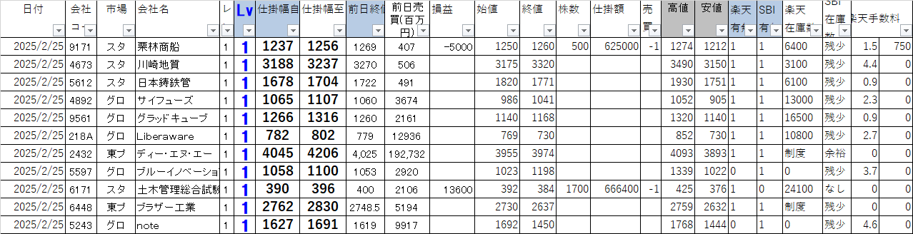 2025年2月25日 今日の寄り引けシステムトレードの損益を公開します
