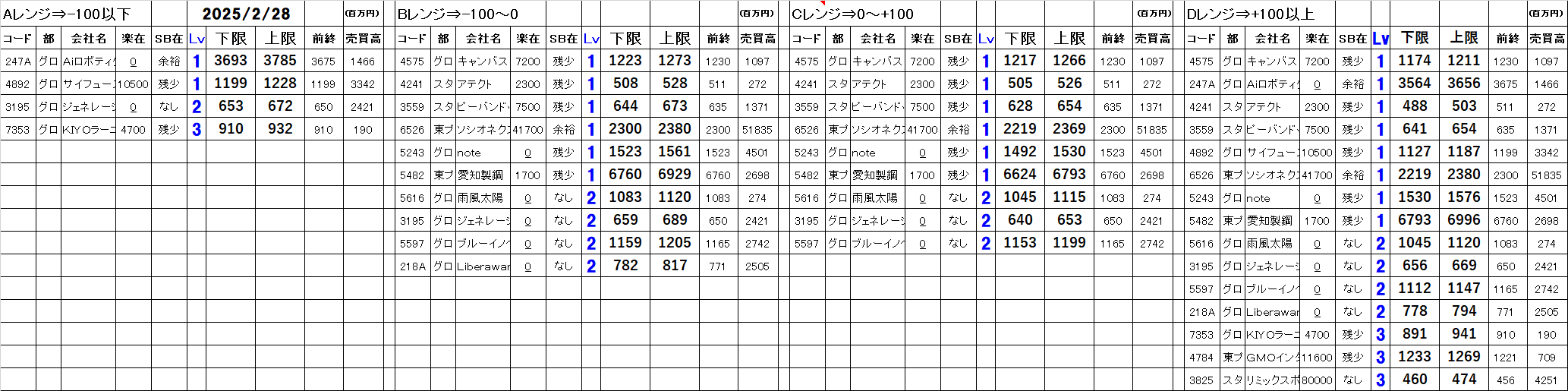 [Aレンジ:-100円以下][Bレンジ:-100円~±0][Cレンジ:±0~+100円][Dレンジ:+100円以上]