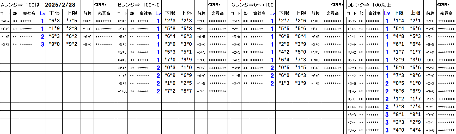 2025年2月28日 のシステムトレードの仕掛候補一覧はこんな感じです。