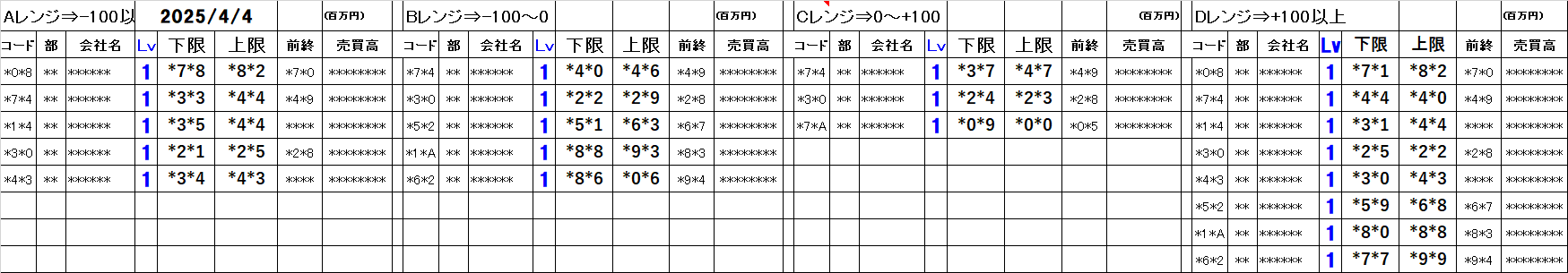 [Aレンジ:-100円以下][Bレンジ:-100円~±0][Cレンジ:±0~+100円][Dレンジ:+100円以上]