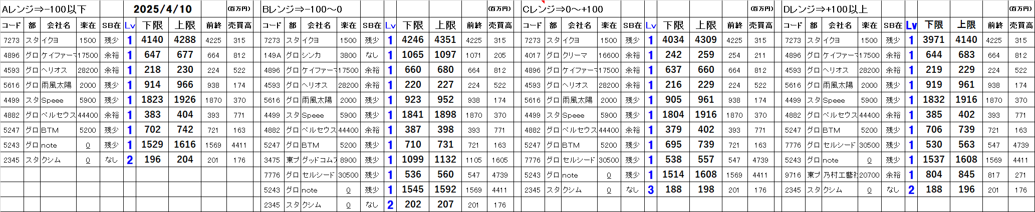 2025年4月10日 今日のシステムトレードの仕掛候補一覧です。
