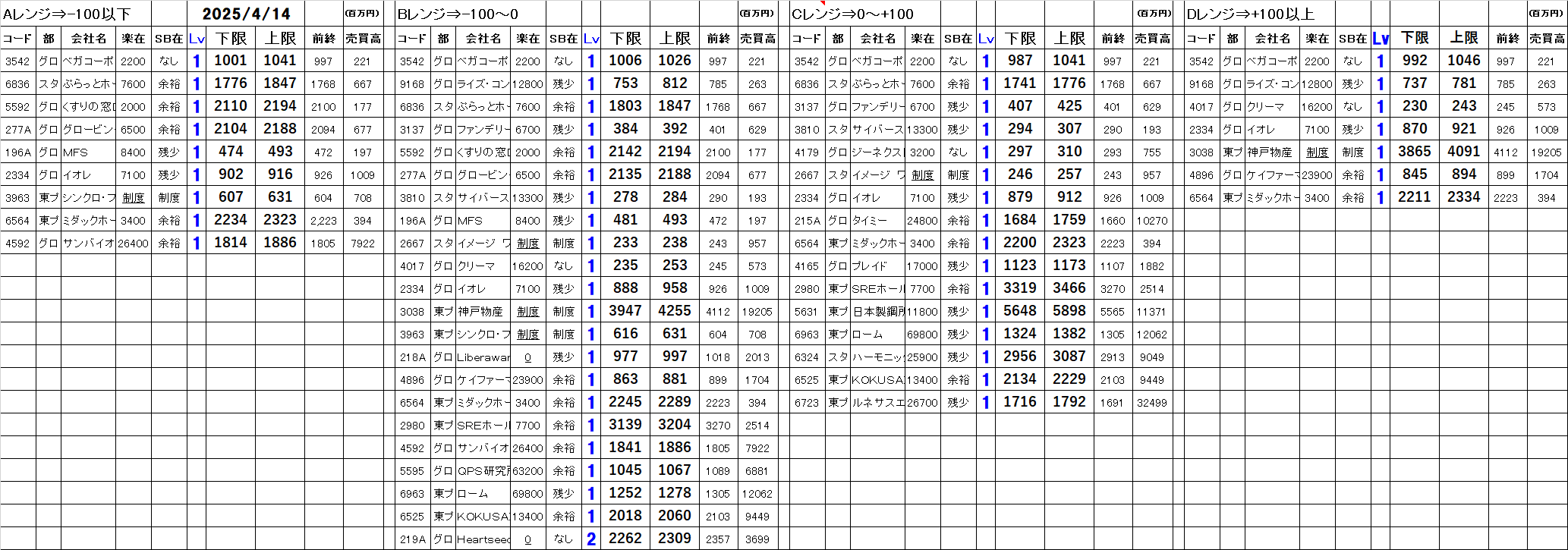 2025年4月14日 今日のシステムトレードの仕掛候補一覧です。