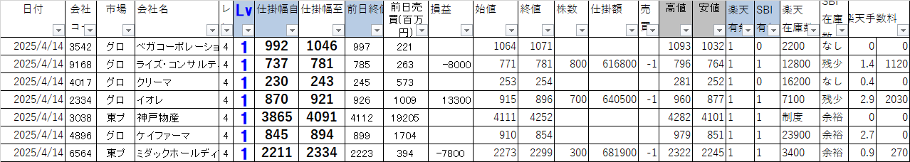 2025年4月14日 今日の寄り引けシステムトレードの損益を公開します