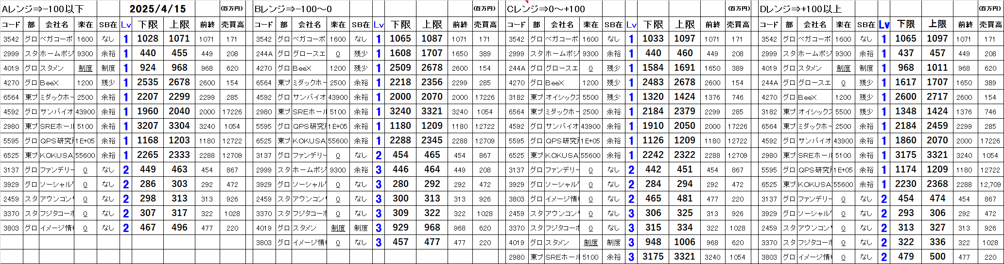 2025年4月15日 今日のシステムトレードの仕掛候補一覧です。
