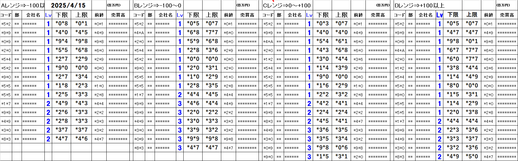 2025年4月15日 のシステムトレードの仕掛候補一覧はこんな感じです。