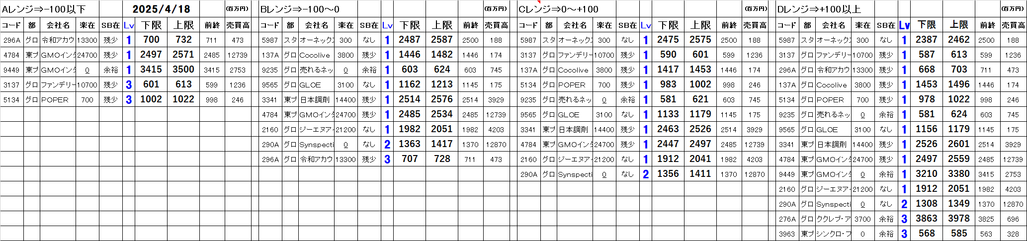 2025年4月18日 今日のシステムトレードの仕掛候補一覧です。