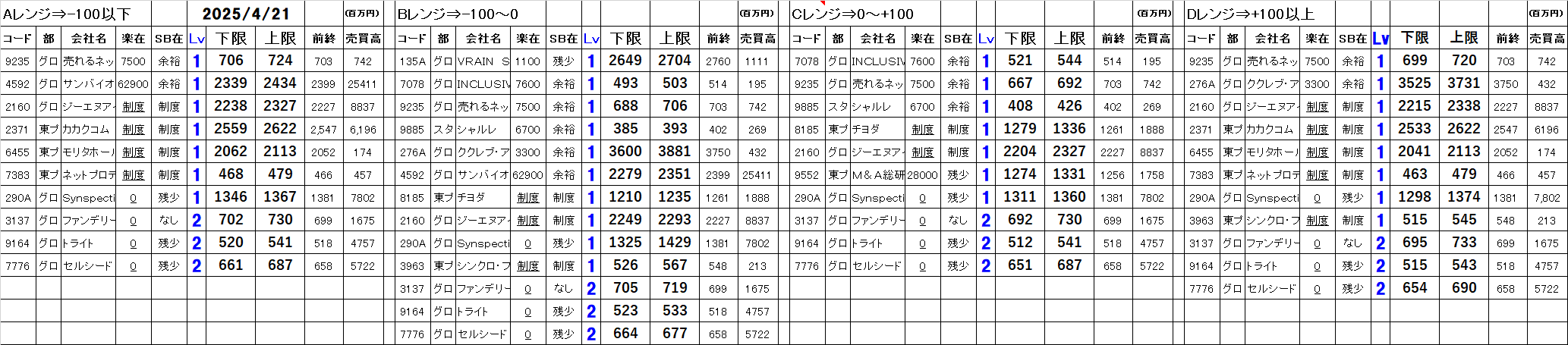 2025年4月21日 今日のシステムトレードの仕掛候補一覧です。