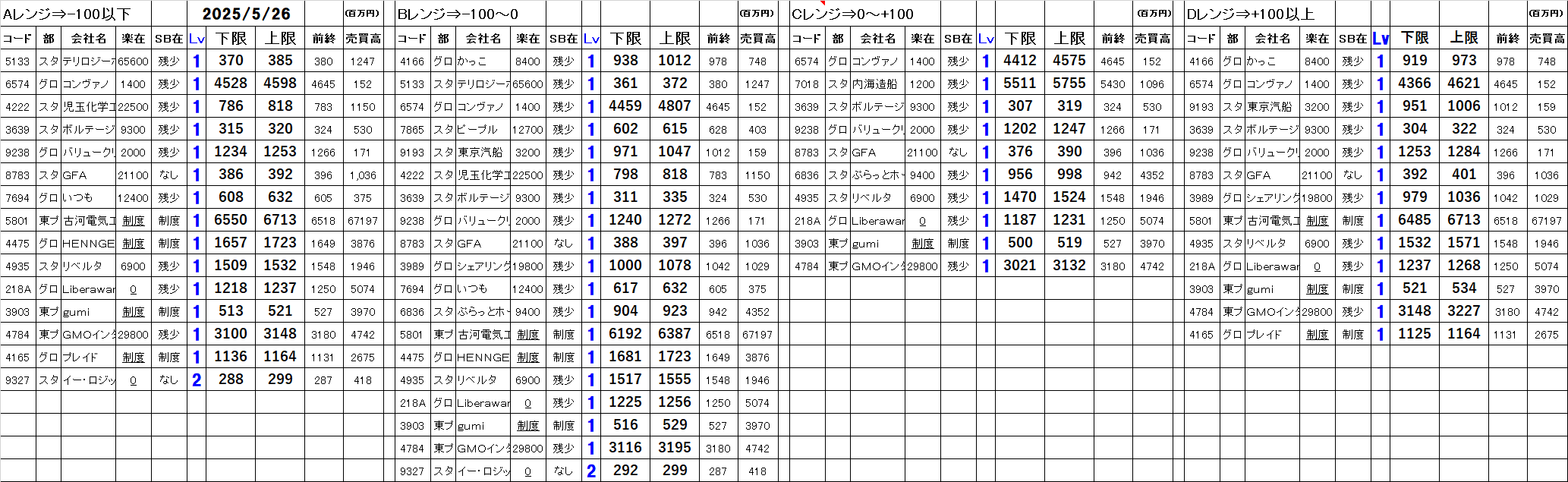 [Aレンジ:-100円以下][Bレンジ:-100円~±0][Cレンジ:±0~+100円][Dレンジ:+100円以上]