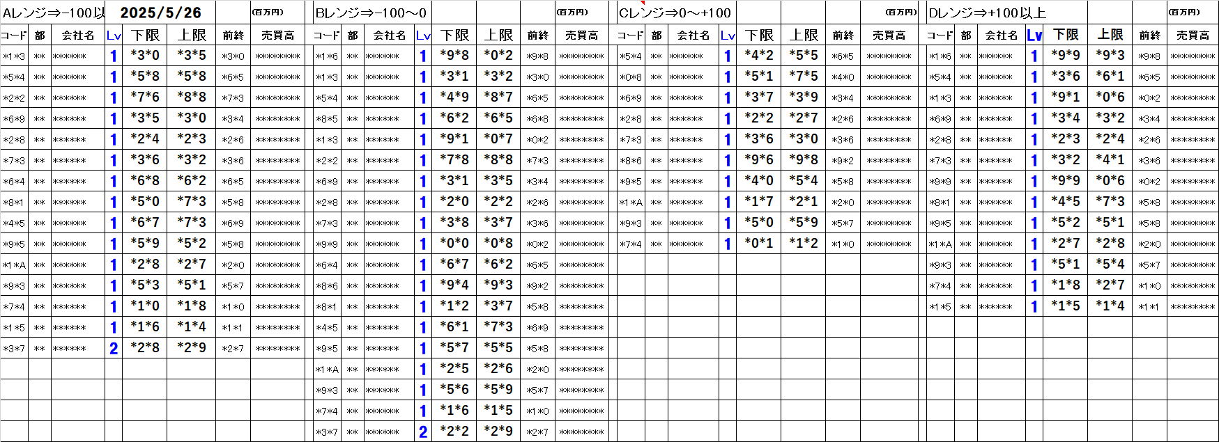 [Aレンジ:-100円以下][Bレンジ:-100円~±0][Cレンジ:±0~+100円][Dレンジ:+100円以上]