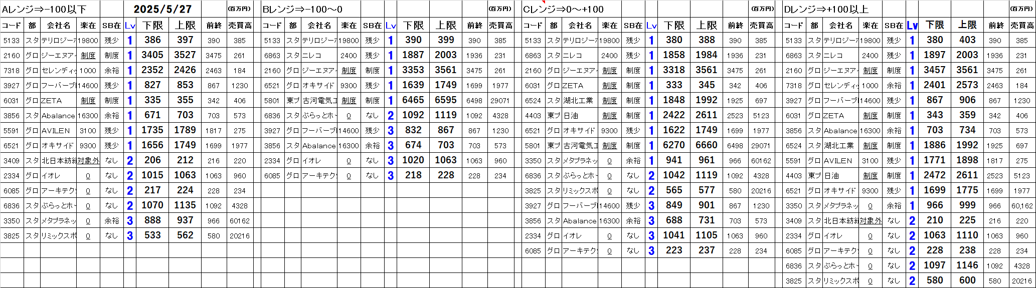 2025年5月27日 今日のシステムトレードの仕掛候補一覧です。