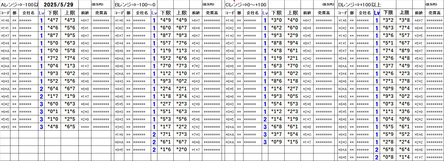 2025年5月29日 のシステムトレードの仕掛候補一覧はこんな感じです。