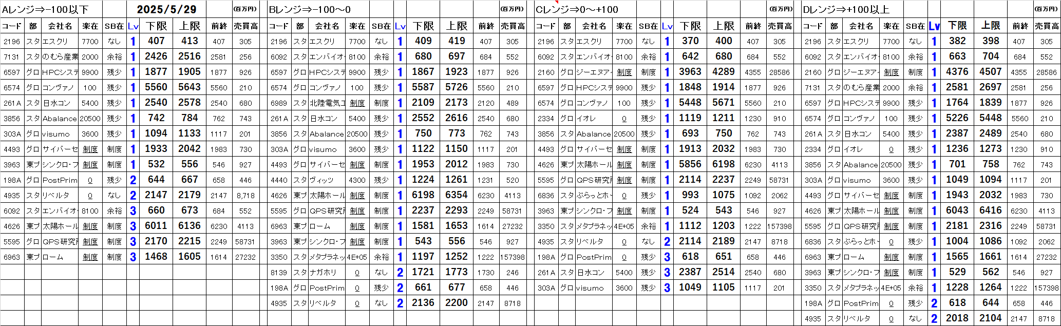2025年5月30日 今日のシステムトレードの仕掛候補一覧です。