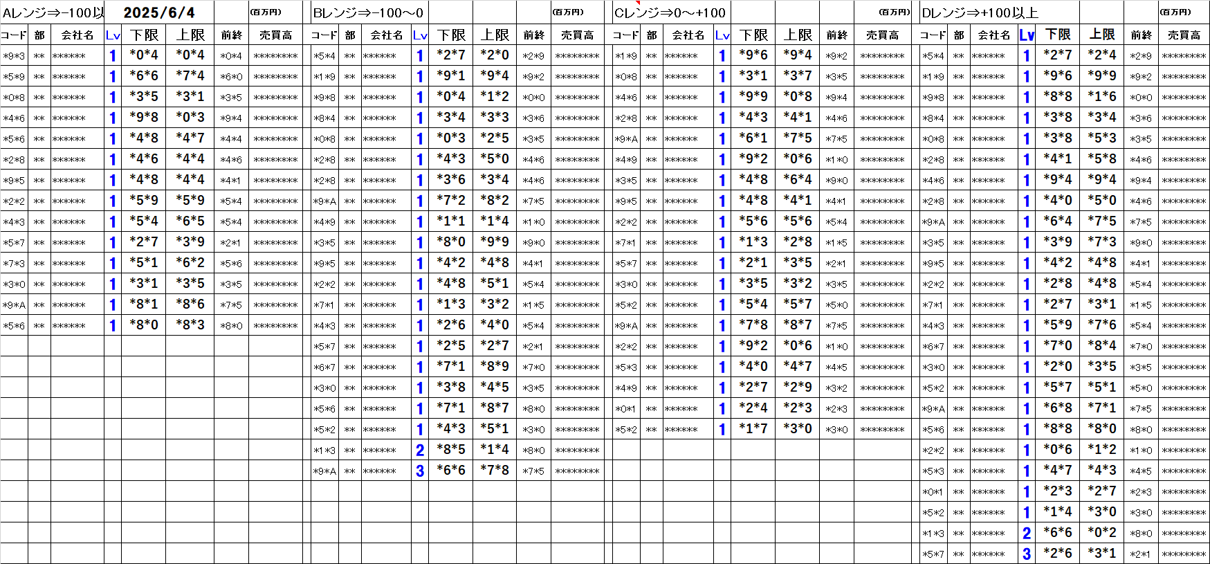 2025年6月4日 のシステムトレードの仕掛候補一覧はこんな感じです。