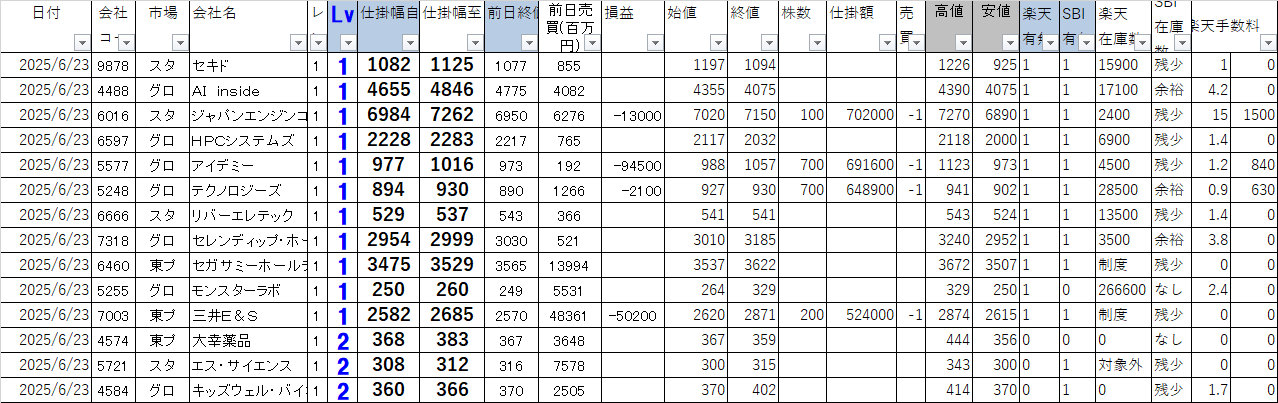 2025年6月23日 今日の寄り引けシステムトレードの損益を公開します