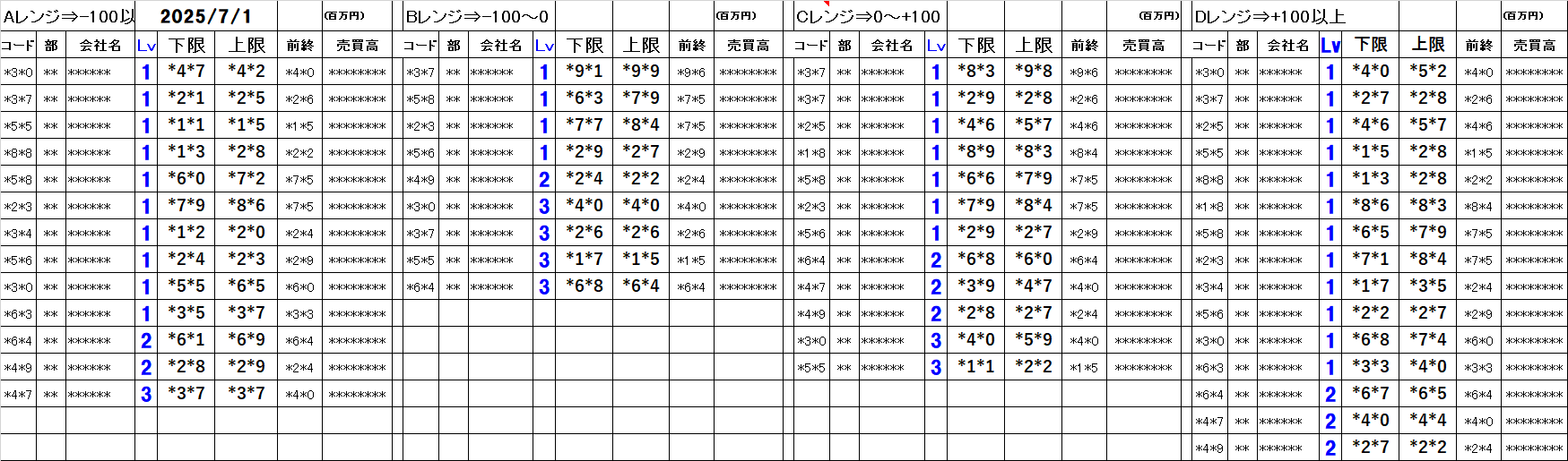 2025年7月1日 のシステムトレードの仕掛候補一覧はこんな感じです。