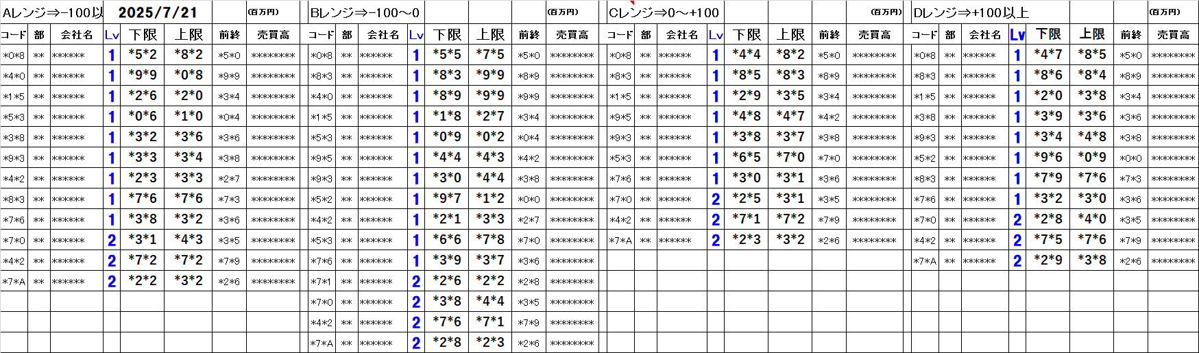 [Aレンジ:-100円以下][Bレンジ:-100円~±0][Cレンジ:±0~+100円][Dレンジ:+100円以上]