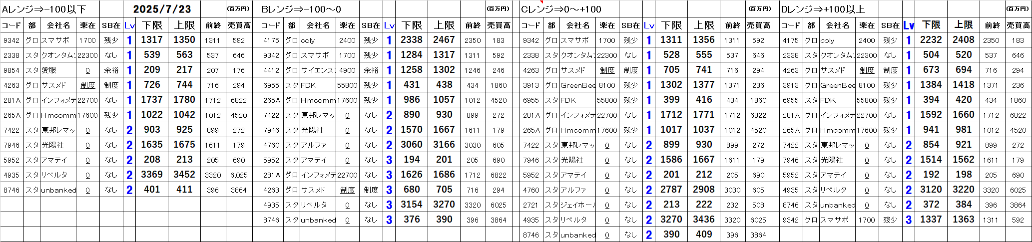 2025年7月23日 今日のシステムトレードの仕掛候補一覧です。