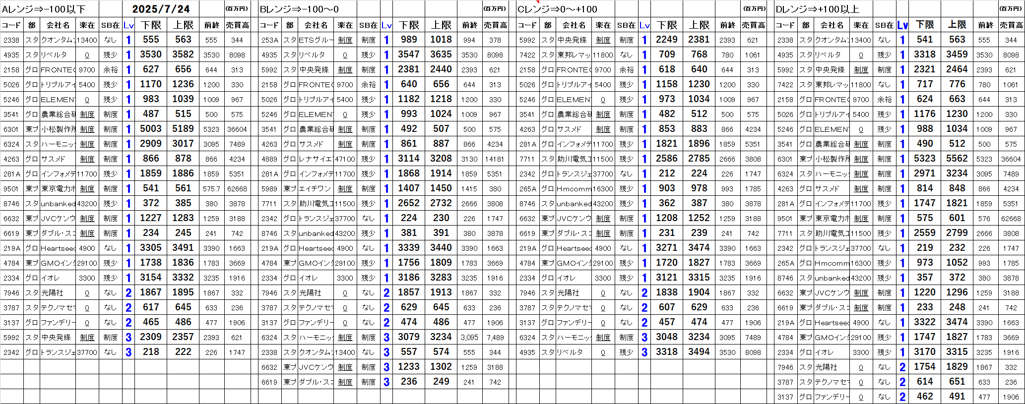 2025年7月24日 今日のシステムトレードの仕掛候補一覧です。
