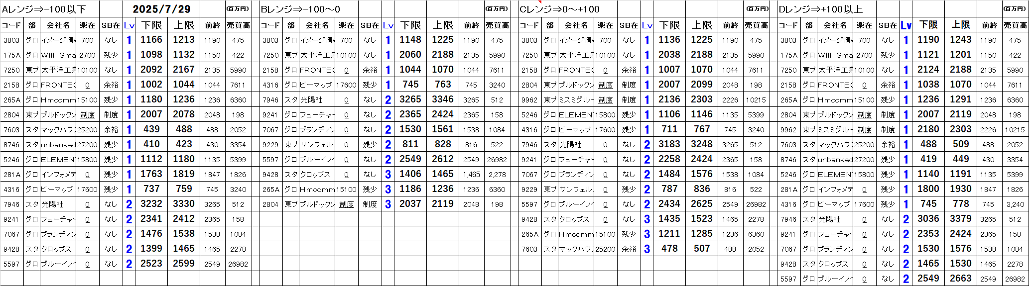 2025年7月29日 今日のシステムトレードの仕掛候補一覧です。