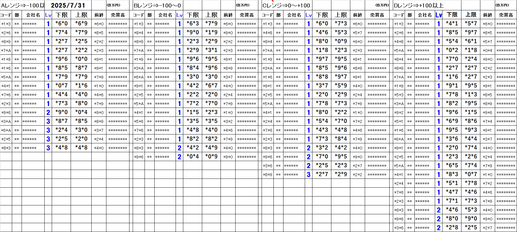 2025年7月31日 のシステムトレードの仕掛候補一覧はこんな感じです。