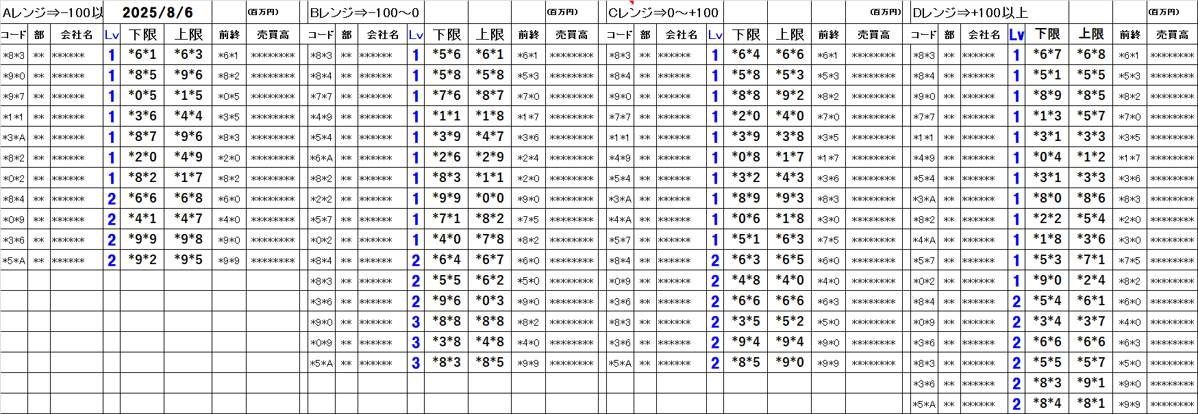 [Aレンジ:-100円以下][Bレンジ:-100円~±0][Cレンジ:±0~+100円][Dレンジ:+100円以上]