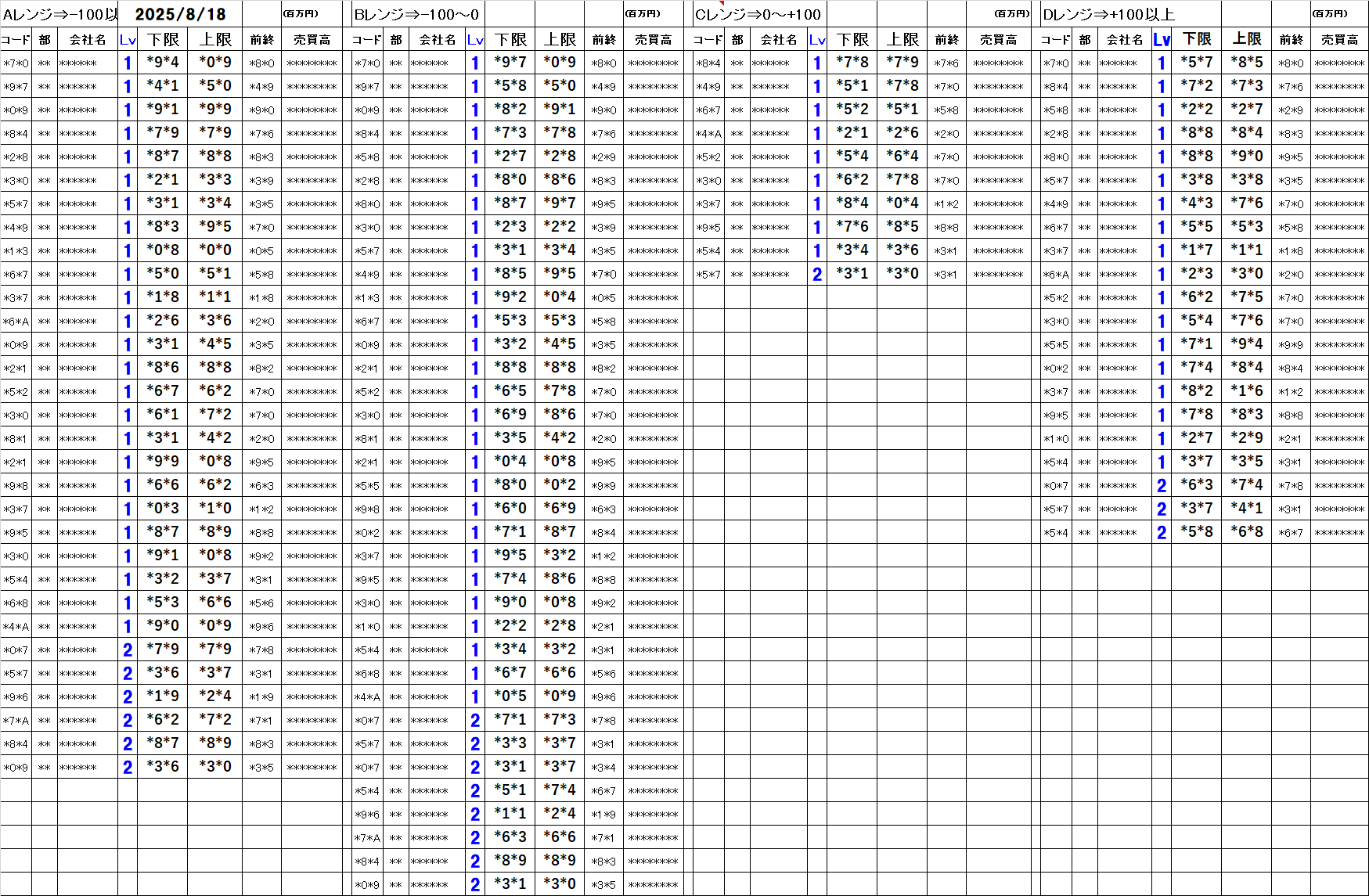 2025年8月18日 のシステムトレードの仕掛候補一覧はこんな感じです。