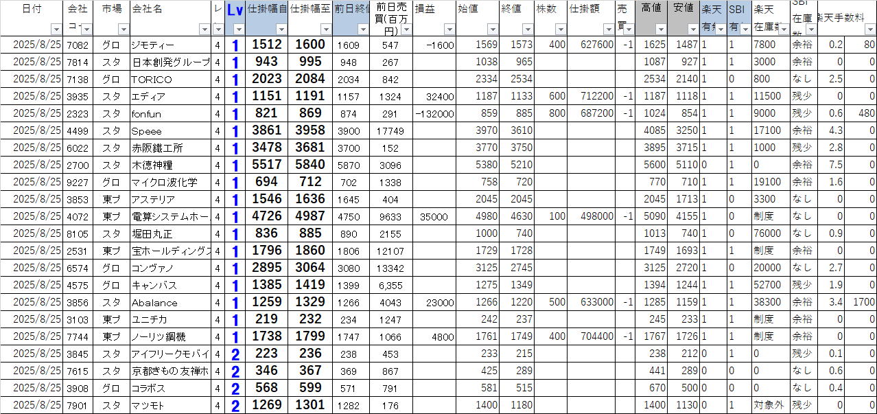 2025年8月25日 今日の寄り引けシステムトレードの損益を公開します