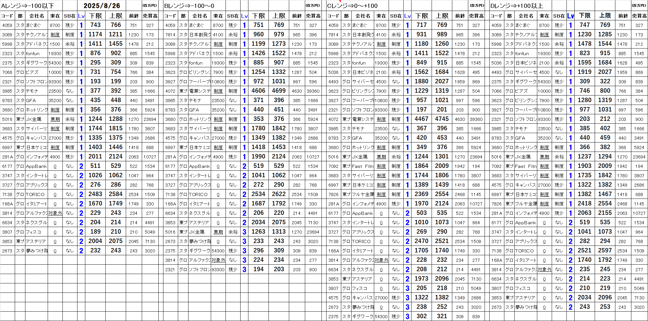 2025年8月26日 今日のシステムトレードの仕掛候補一覧です。