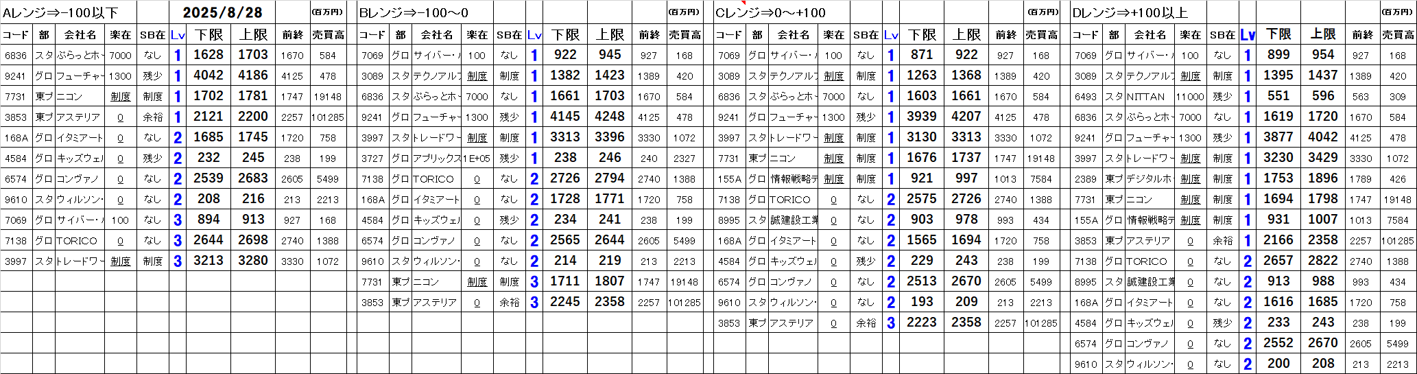 2025年8月28日 今日のシステムトレードの仕掛候補一覧です。