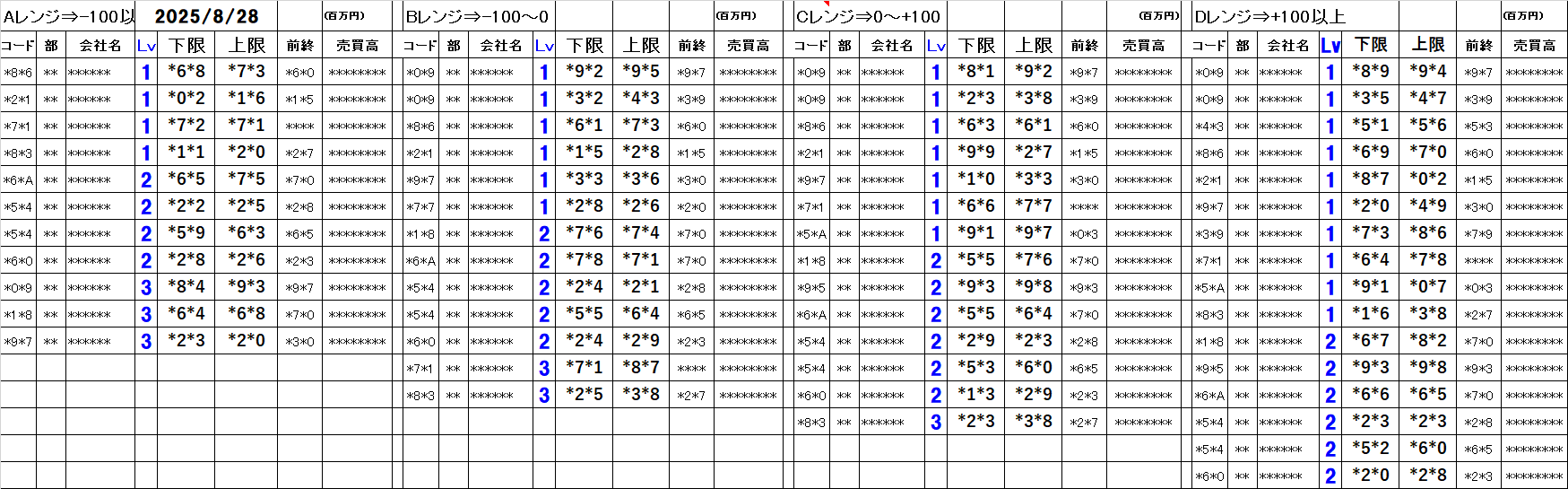 2025年8月28日 のシステムトレードの仕掛候補一覧はこんな感じです。