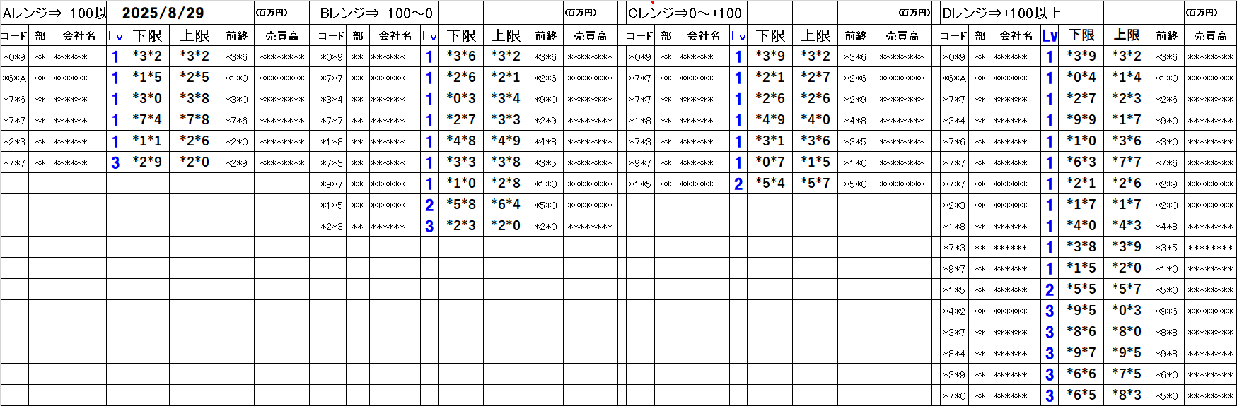 2025年8月29日 のシステムトレードの仕掛候補一覧はこんな感じです。