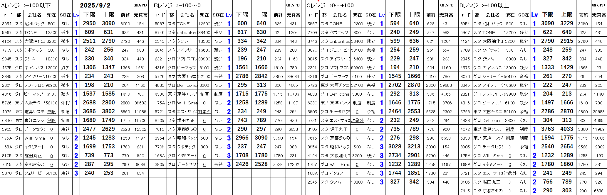 2025年9月2日 今日のシステムトレードの仕掛候補一覧です。