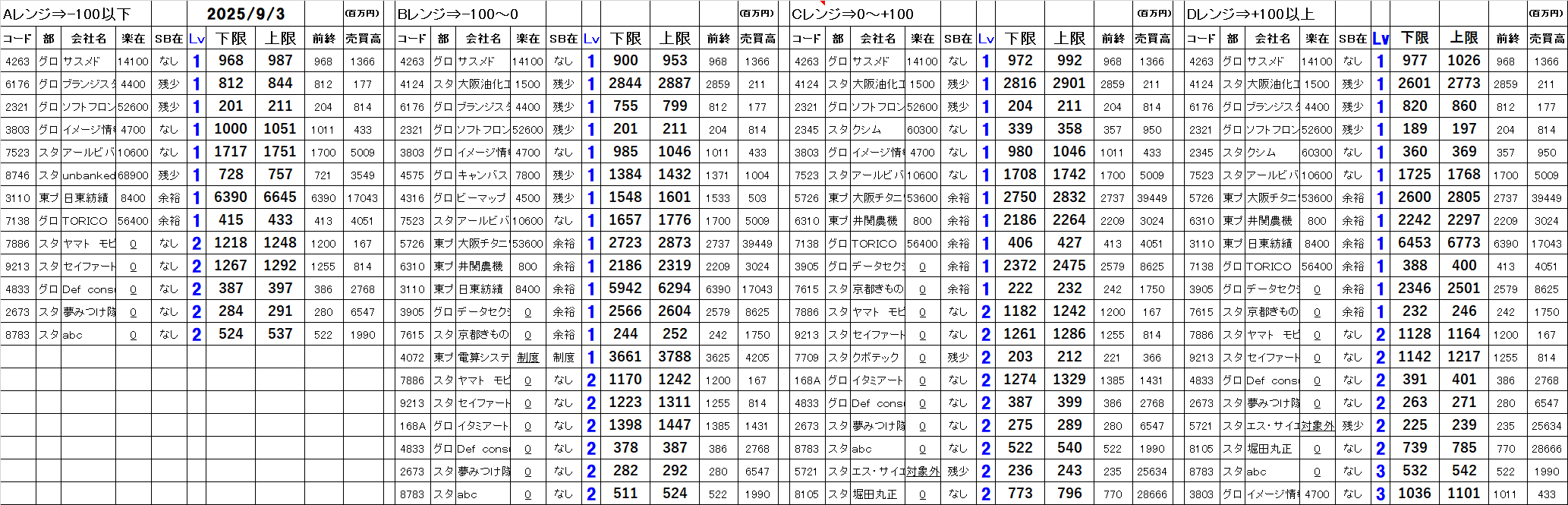 [Aレンジ:-100円以下][Bレンジ:-100円~±0][Cレンジ:±0~+100円][Dレンジ:+100円以上]