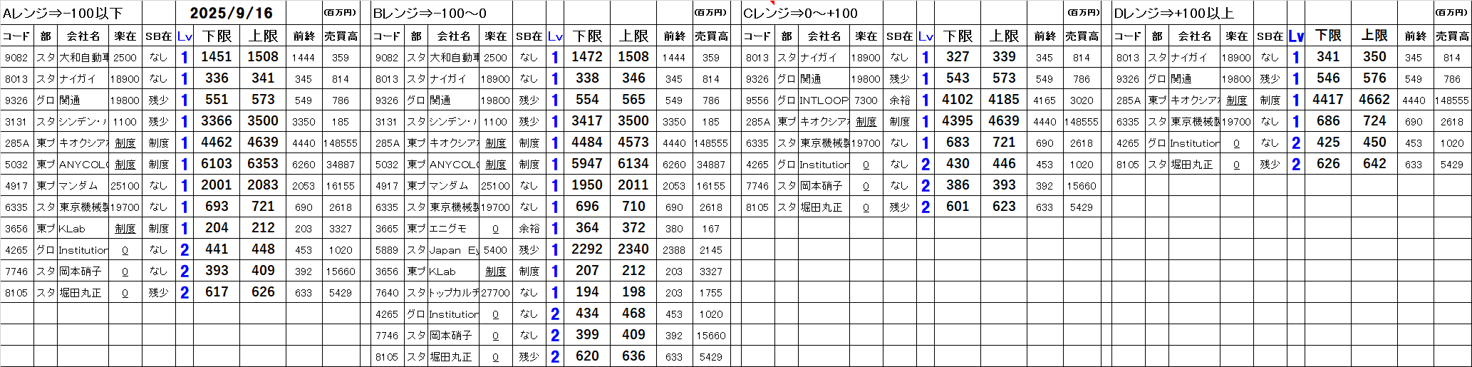 [Aレンジ:-100円以下][Bレンジ:-100円~±0][Cレンジ:±0~+100円][Dレンジ:+100円以上]