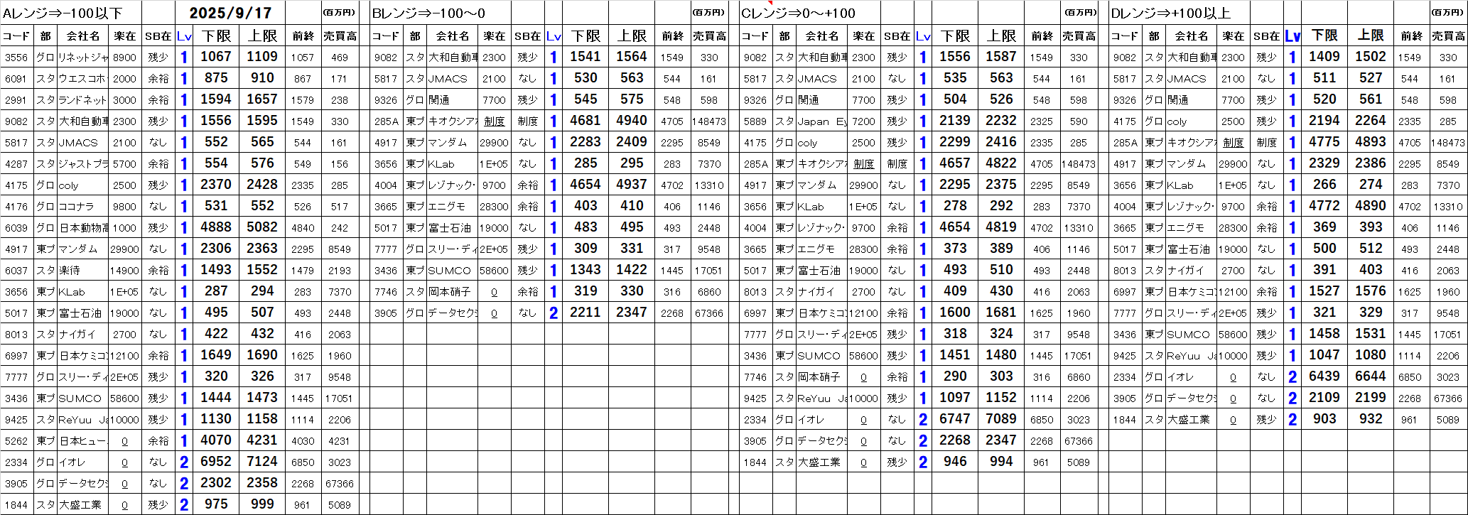 [Aレンジ:-100円以下][Bレンジ:-100円~±0][Cレンジ:±0~+100円][Dレンジ:+100円以上]