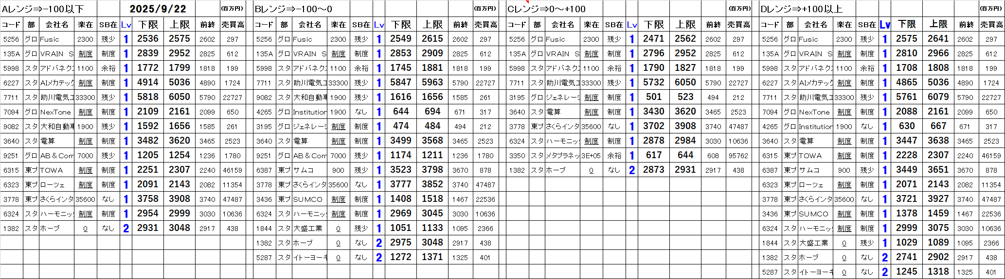 2025年9月22日 今日のシステムトレードの仕掛候補一覧です。