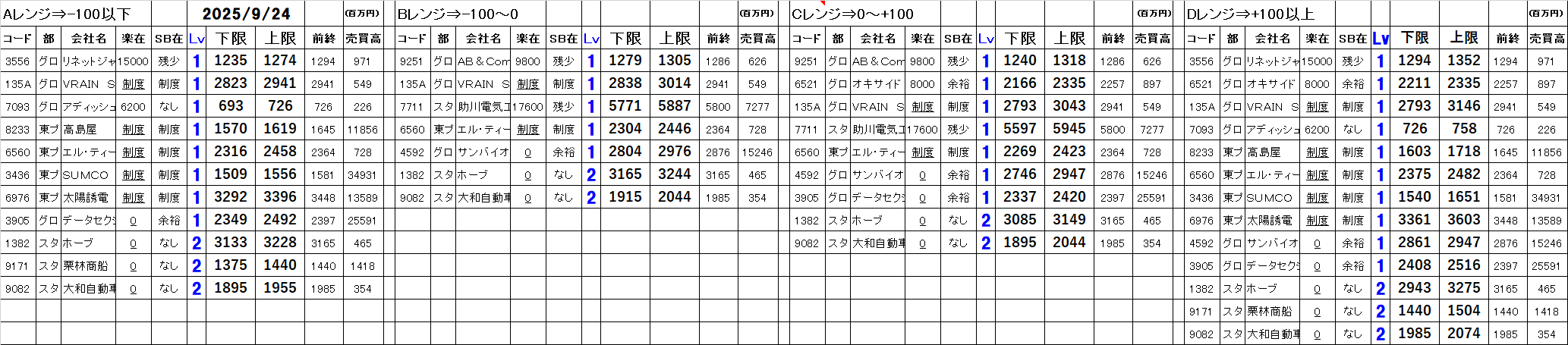 2025年9月24日 今日のシステムトレードの仕掛候補一覧です。