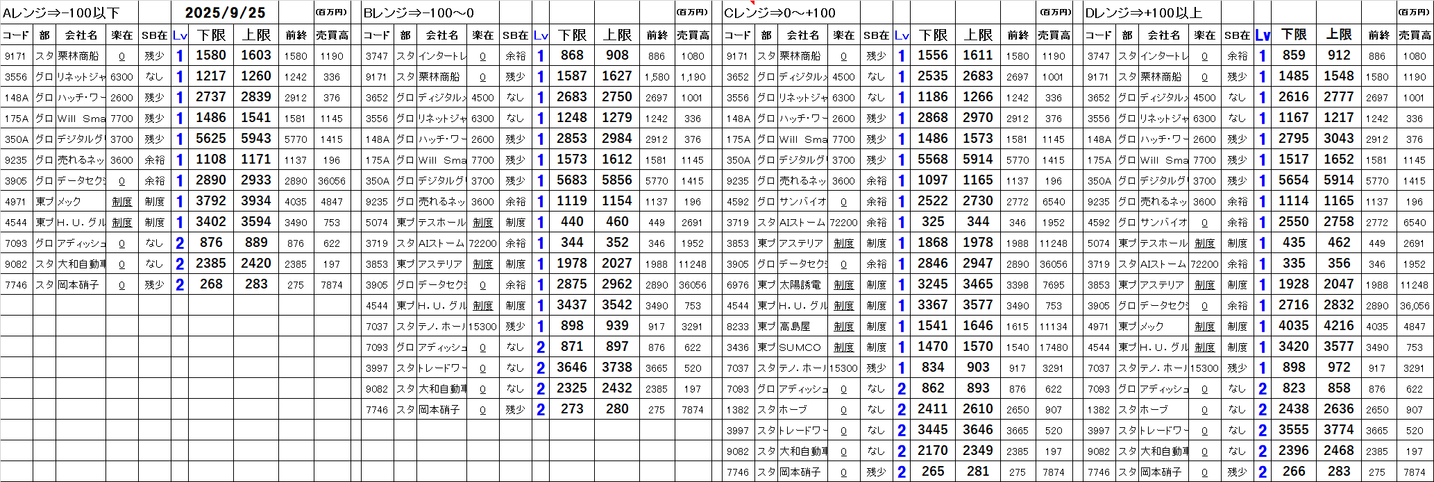 2025年9月25日 今日のシステムトレードの仕掛候補一覧です。