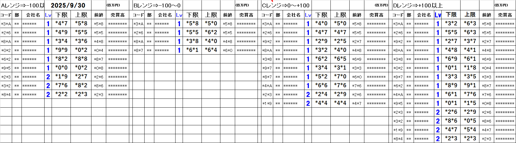 2025年9月30日 のシステムトレードの仕掛候補一覧はこんな感じです。